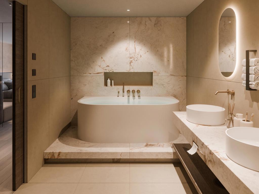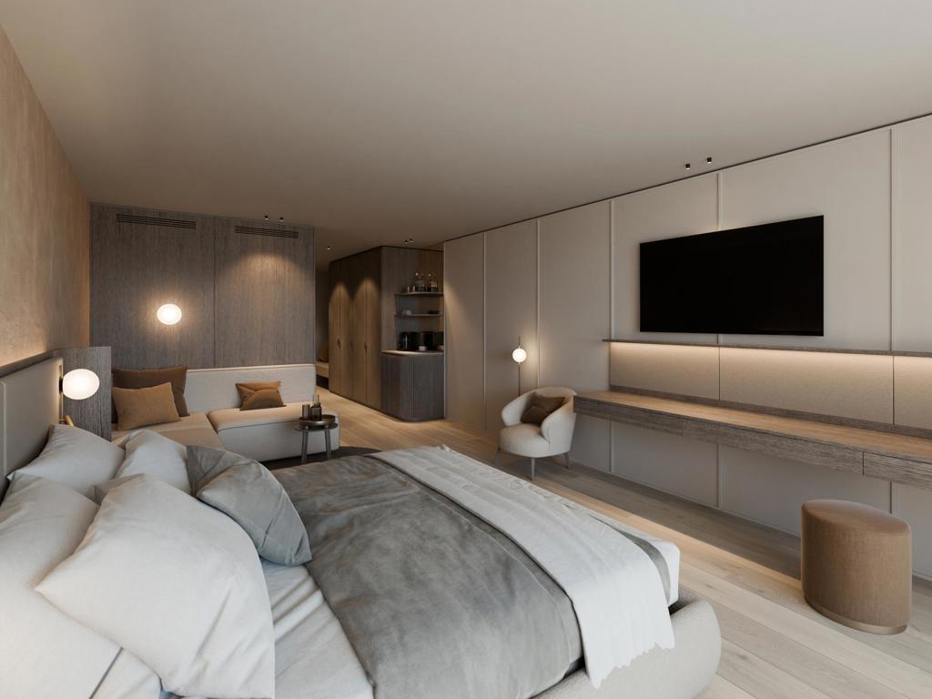 100 m², terrazza con vista panoramica, pavimento in legno, ampio soggiorno, camera per bambini separata con letti singoli e bagno con doccia, camera matrimoniale e bagno con vasca e doccia, WC, bidet, asciugacapelli, cassaforte, minibar, macchina Nespresso, telefono, scrivania, TV satellitare, WiFi gratuito, aria condizionata, borsa wellness con accappatoi e asciugamani