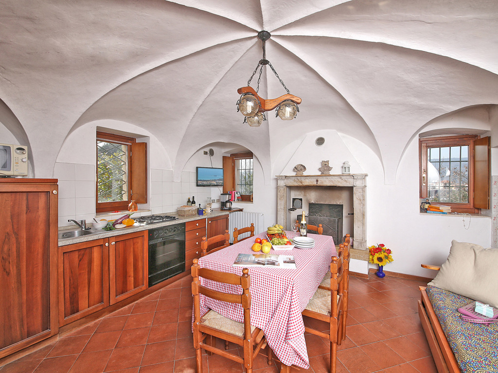 Quadrilocale di 80-100 mq al piano terra. Ampio soggiorno con angolo cottura completamente attrezzato (piano cottura quattro fuochi, frigocongelatore, lavastoviglie, forno microonde), divano letto matrimoniale, tre camere matrimoniali, due bagni di cui uno con doccia. Caratteristiche architettoniche originali: volte in pietra o travi in legno a vista a seconda dell'unità. Alcuni appartamenti dispongono di soppalco con camera aggiuntiva. Wi-Fi gratuito, TV-Sat, cassaforte, biancheria inclusa. Spazio esterno riservato: portico nella corte storica o gazebo privato con tavolo e sedie. Posto auto coperto in garage. Animali ammessi su richiesta. Nota: aria condizionata disponibile solo in alcune unità. Ideale per famiglie numerose e gruppi di amici fino a 7 persone.