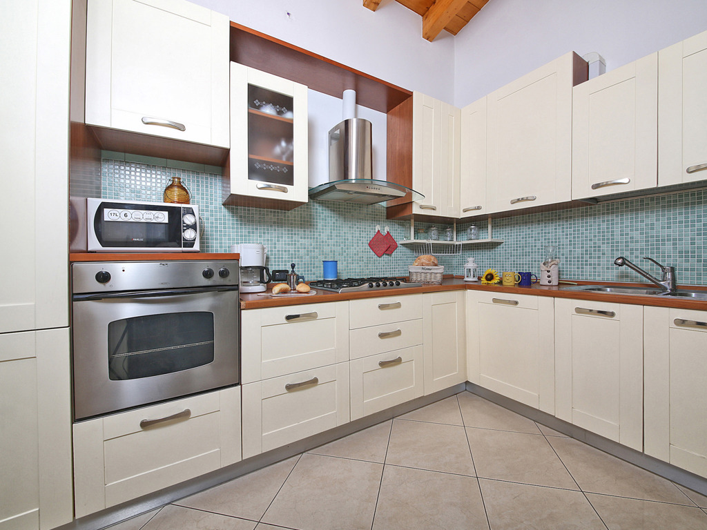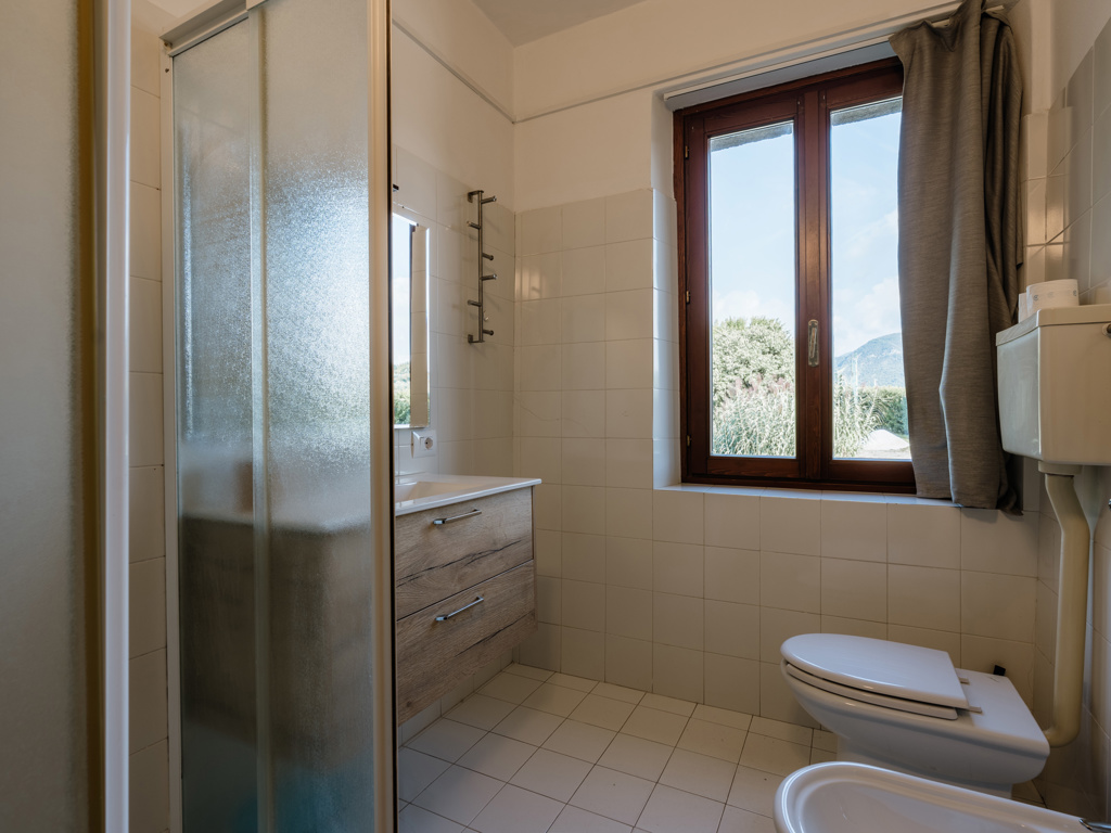 Pentalocale di 120 mq al primo piano della struttura nuova, il più spazioso della tenuta. Cucina abitabile completamente attrezzata (piano cottura quattro fuochi, frigocongelatore, lavastoviglie, forno microonde) separata dal soggiorno. Ampio living con divani, quattro camere da letto matrimoniali, due bagni completi con doccia. Parquet nelle camere e nel soggiorno, soffitti con travi in legno a vista, grandi portefinestre panoramiche. Vista sugli oliveti e sui prati della tenuta agricola. Aria condizionata, Wi-Fi gratuito, TV-Sat, cassaforte, biancheria inclusa. Balcone e ampia terrazza con attrezzatura da esterno. Posto auto coperto in garage. Animali ammessi su richiesta. Ideale per famiglie numerose, gruppi di amici e soggiorni prolungati fino a 8 persone.